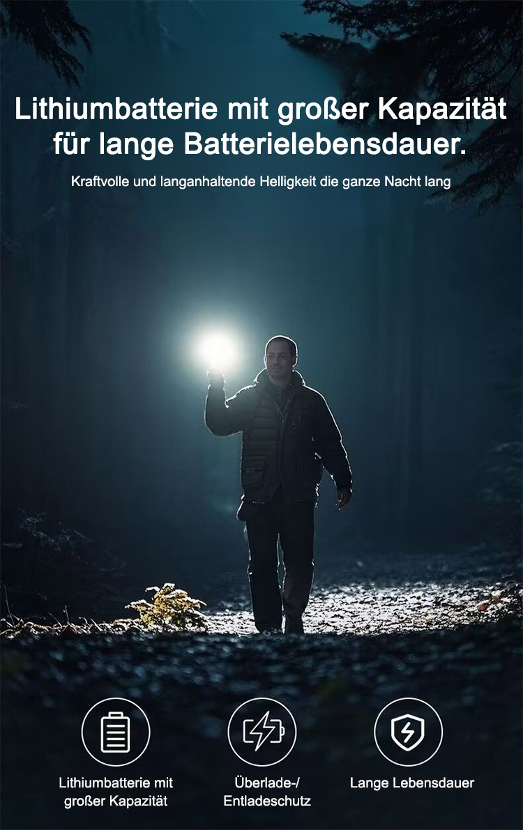 Ein extrem heller Lichtstrahl mit bis zu 6.000 Lumen erhellt mühelos ganze Gebäude. Diese Hochleistungs-Taschenlampe vereint Beleuchtung, Powerbank und Selbstverteidigungsfunktion in einem – jetzt zugreifen!